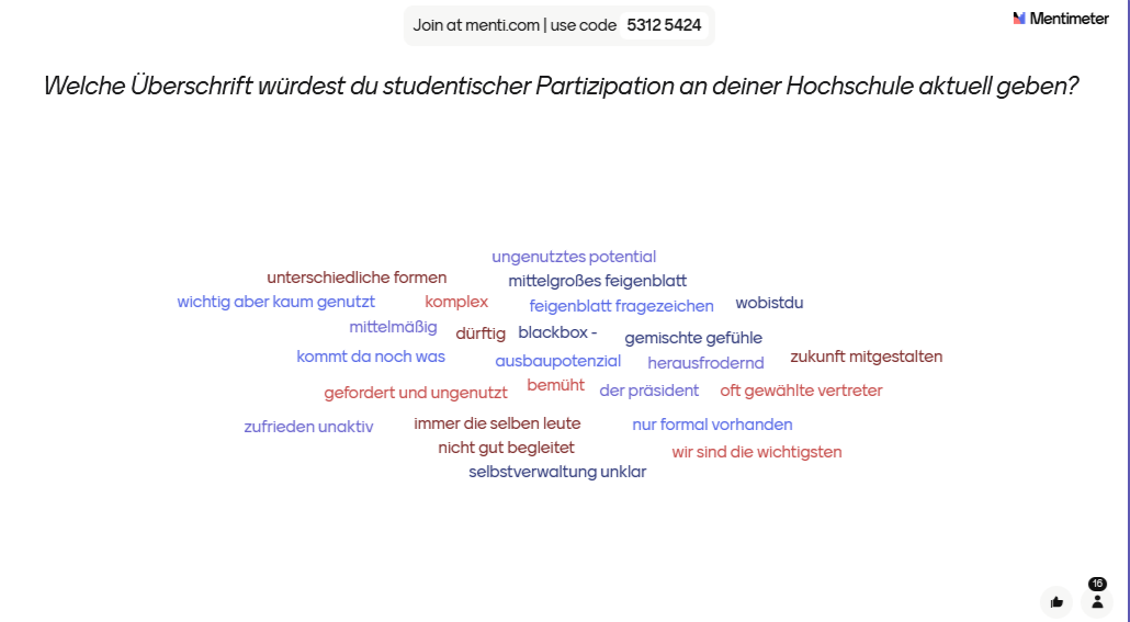 Gesammelte Antworten zur Frage, welche Überschrift studentische Partizipation an der HS trägt.