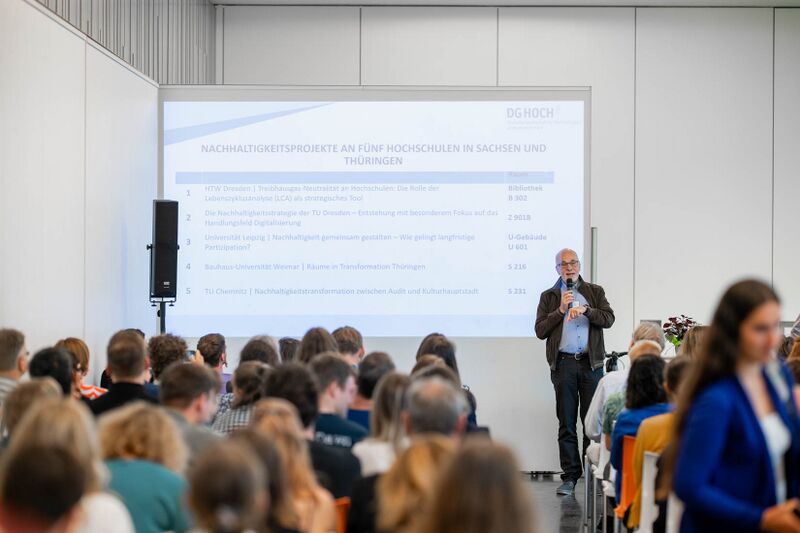 Prof Müller-Christ stellt Auswahl von Projektvorstellungen am Beamer vor